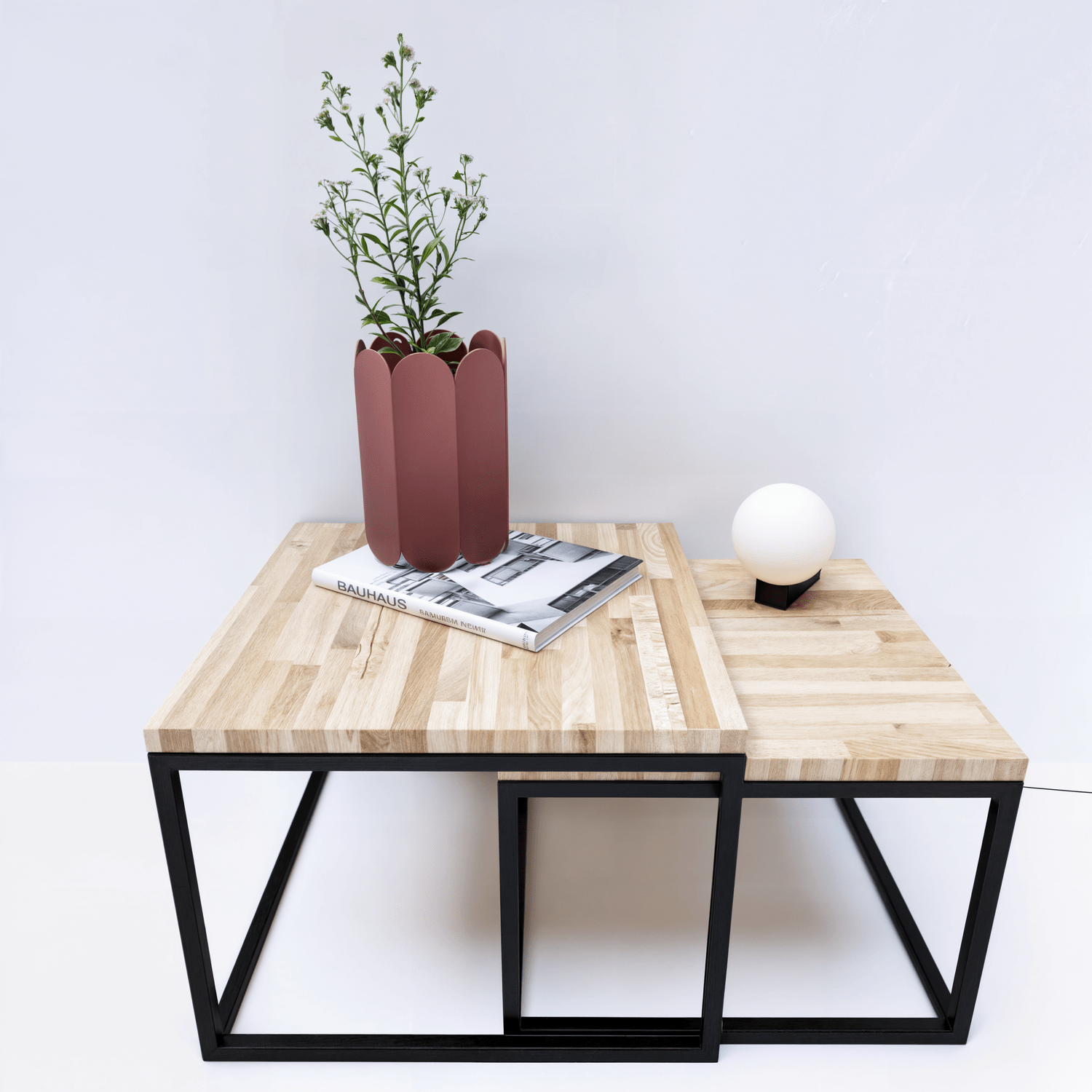Der SQUARE 2-in-1 Couchtisch ist ein Set aus zwei stilvollen Tischen mit modernem Design: Der größere misst 600×600×447 mm, der kleinere 550×550×397 mm und kann entweder zusammen oder separat platziert werden. Die Tischp