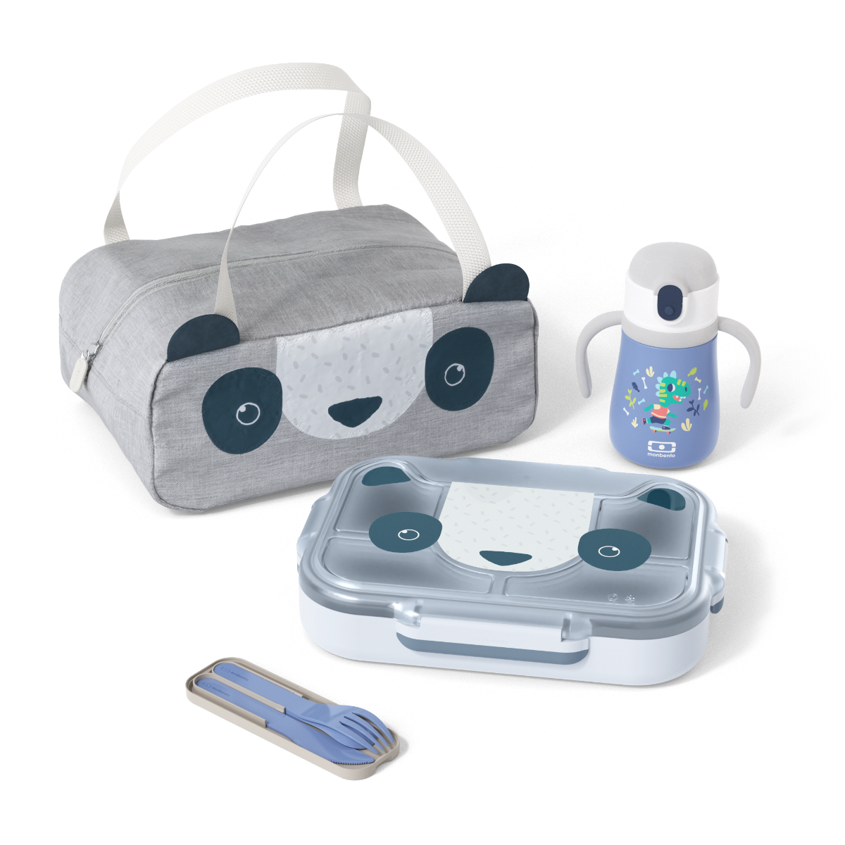 Das unterteilte Tablett für Kinder – monbento Set MB Wonder – Fortgeschrittener Erforscher blau Panda