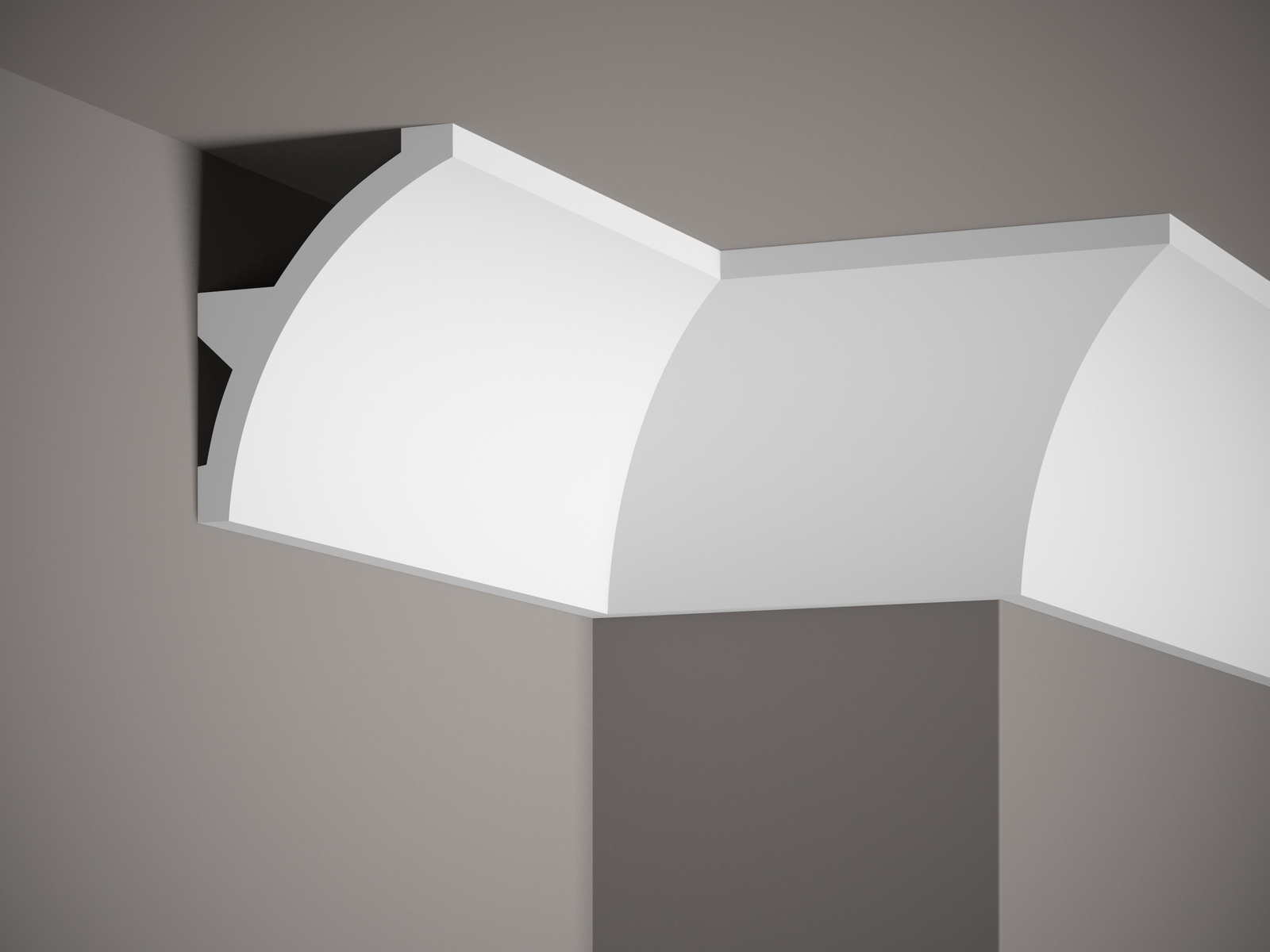 Die Deckenleiste MDB101 ist ein minimalistisches Profil mit einer dezenten Biegung, das für die Montage von LED-Beleuchtung konzipiert wurde. Die Konstruktion ermöglicht die Verbergung von Kabeln und Lichtstreifen, was z