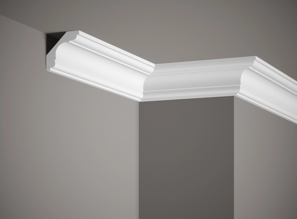 Die Deckenleiste MDB106 wurde entwickelt, um einen ästhetischen Abschluss an der Verbindung zwischen Wand und Decke zu schaffen. Sie hilft, Unregelmäßigkeiten und Lücken zu kaschieren, hebt den Raum visuell an und schaff