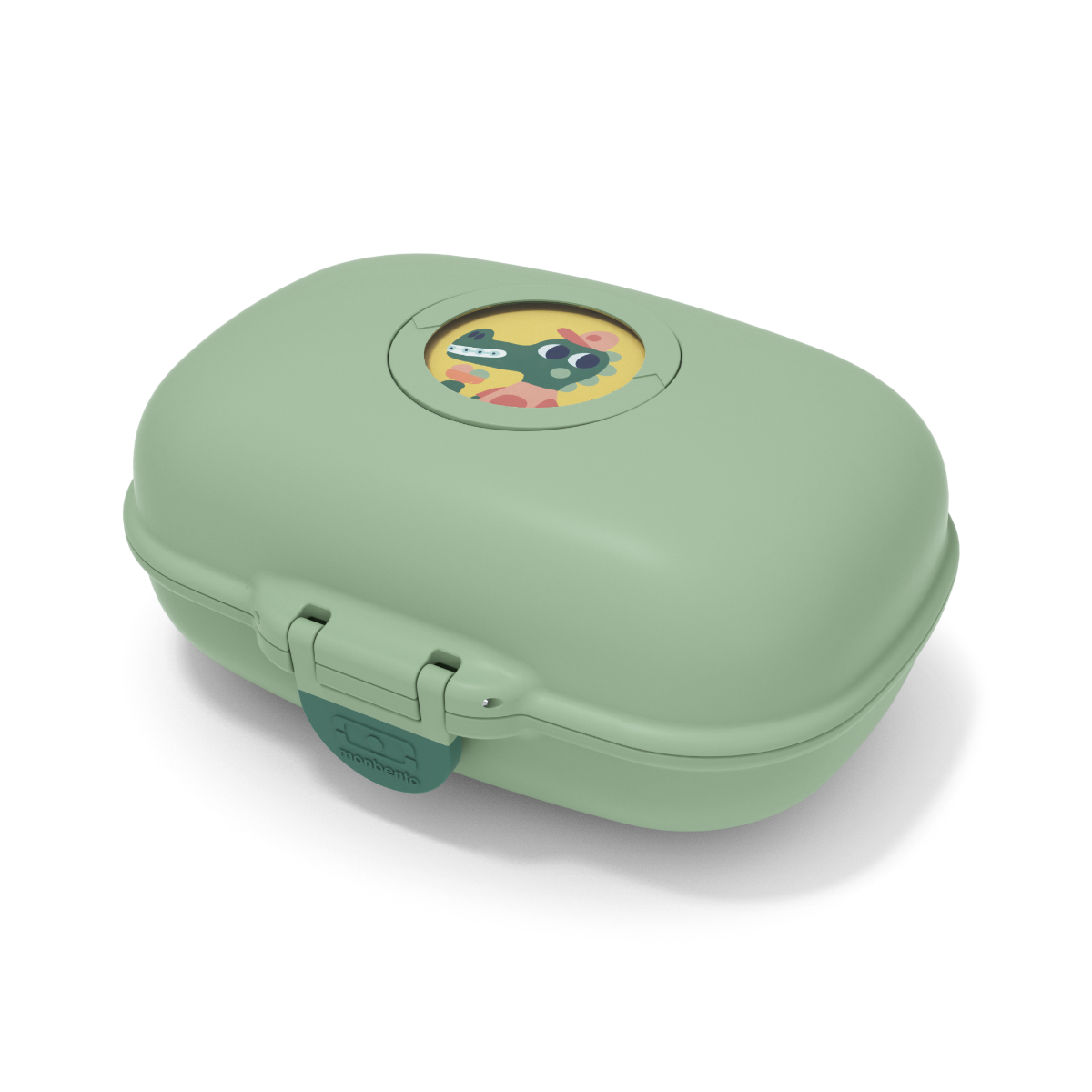 Schule, Ferien, Picknicks oder Schulausflüge: Die Snackbox MB Gram blau Infinity passt unauffällig in alle Taschen. Dank der austauschbaren Buttons kann sie immer wieder neugestaltet werden und der Pausensnack wird garan