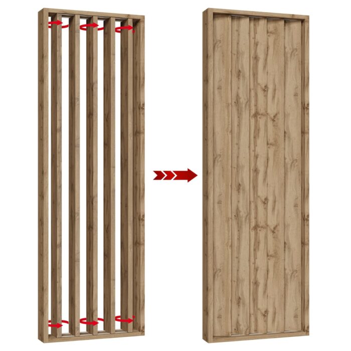 Die freistehende Wand mit drehbaren Lamellen ist die ideale Lösung für die Raumaufteilung in Ihrem Interieur. Die drehbaren Lamellen sind aus robusten 22 mm dicken und 90 mm breiten Latten gefertigt. Wir passen die Länge