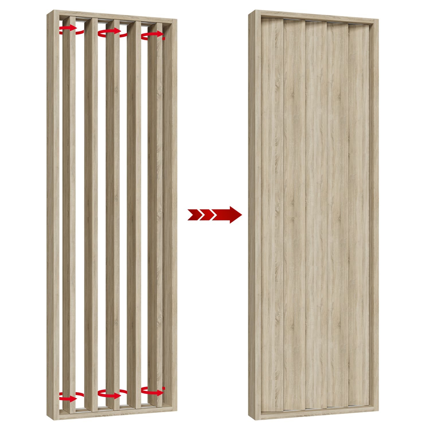 Die freistehende Wand mit drehbaren Lamellen ist die ideale Lösung für die Raumaufteilung in Ihrem Interieur. Die drehbaren Lamellen sind aus robusten 22 mm dicken und 90 mm breiten Latten gefertigt. Wir passen die Länge