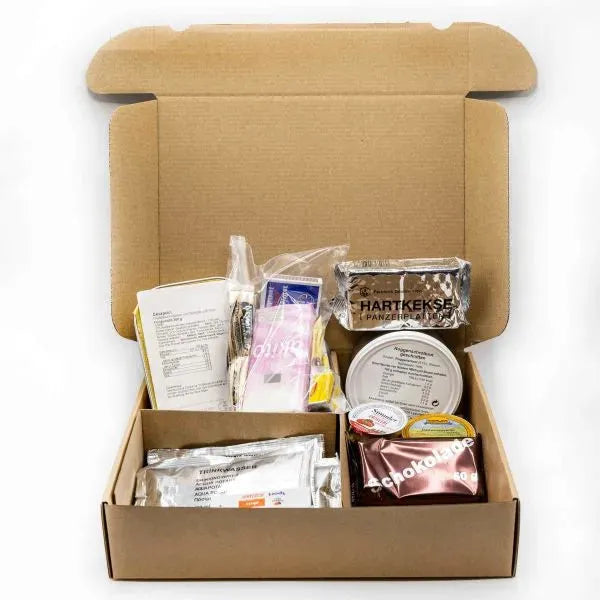 - Der durchschnittliche Nährwert der Einmannpackung entspricht etwa 3000 kcal.