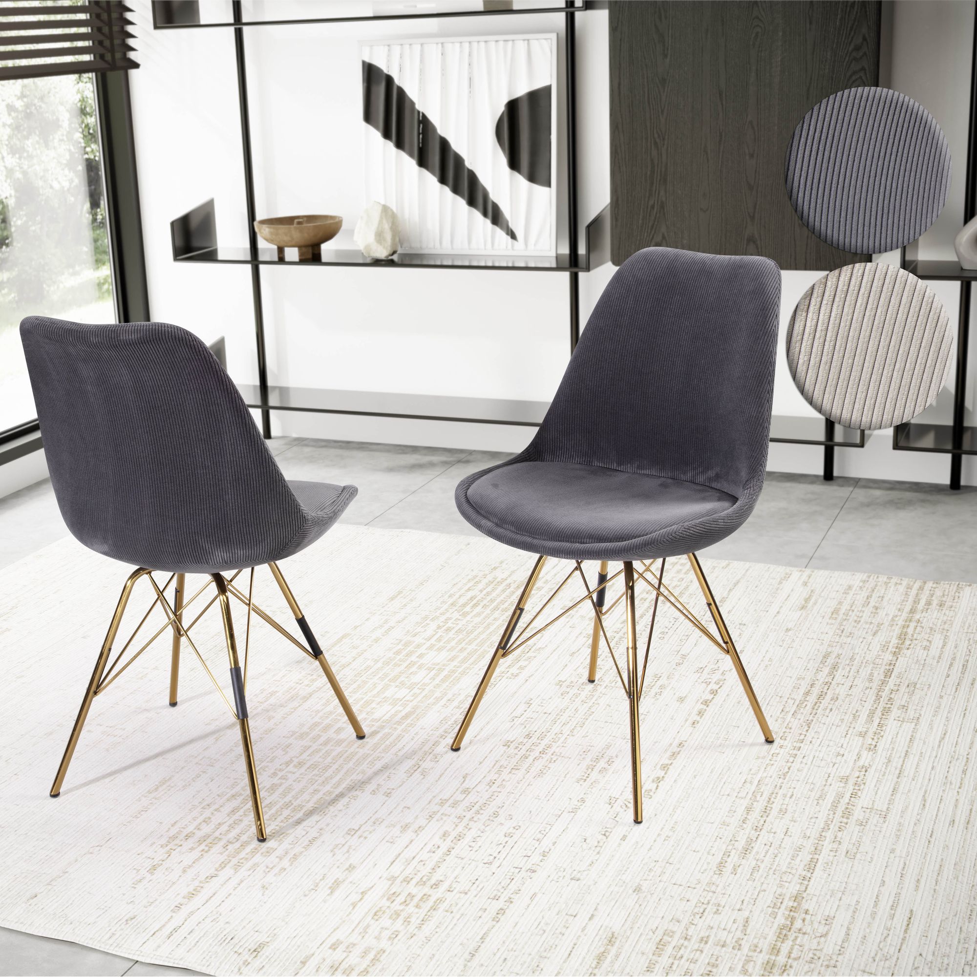 FineBuy Esszimmerstuhl 2er Set Cara-Stoff Küchenstuhl mit goldenen Beinen, Cord-Schalenstuhl Skandinavisches Design, Polsterstuhl mit Stoffbezug, Stuhl Gepolstert