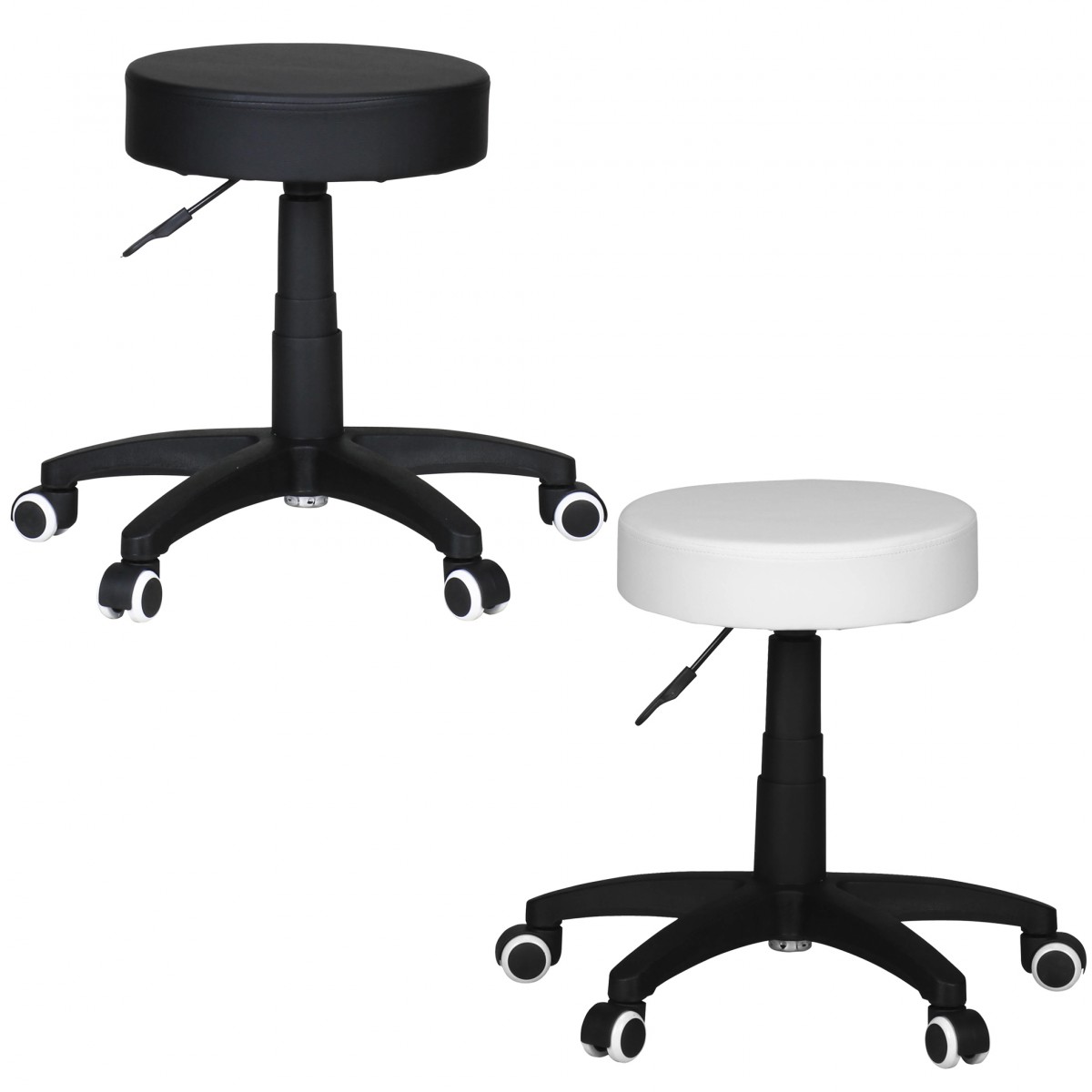 Design Robuster Bürohocker mit Leder-Optik Sitzfläche Fußkreuz aus Kunststoff für optimale Stabilität Besonderheiten Sitz um 360° frei drehbar Empfohlene Maximalbelastbarkeit bis 100kg Material Kunstleder Textilzusammens