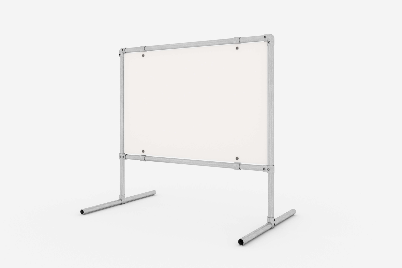 Die vollständige freistehende Werbekonstruktion besteht aus Aluminiumrohren, die mit Verbindungsstücken aus Gusseisen verbunden sind und mit Schrauben festgezogen werden. Das Set besteht aus: Profilen, Halterung und Verb