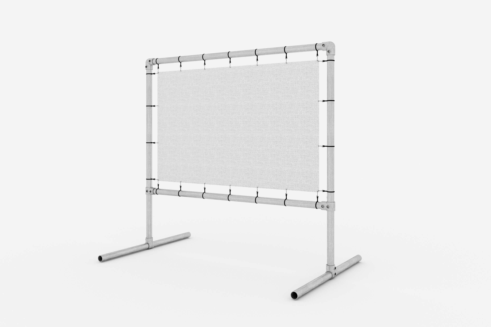 Die vollständige freistehende Werbekonstruktion besteht aus Aluminiumrohren, die mit Verbindungsstücken aus Gusseisen verbunden sind und mit Schrauben festgezogen werden. Das Set besteht aus: Profilen, Halterung und Verb