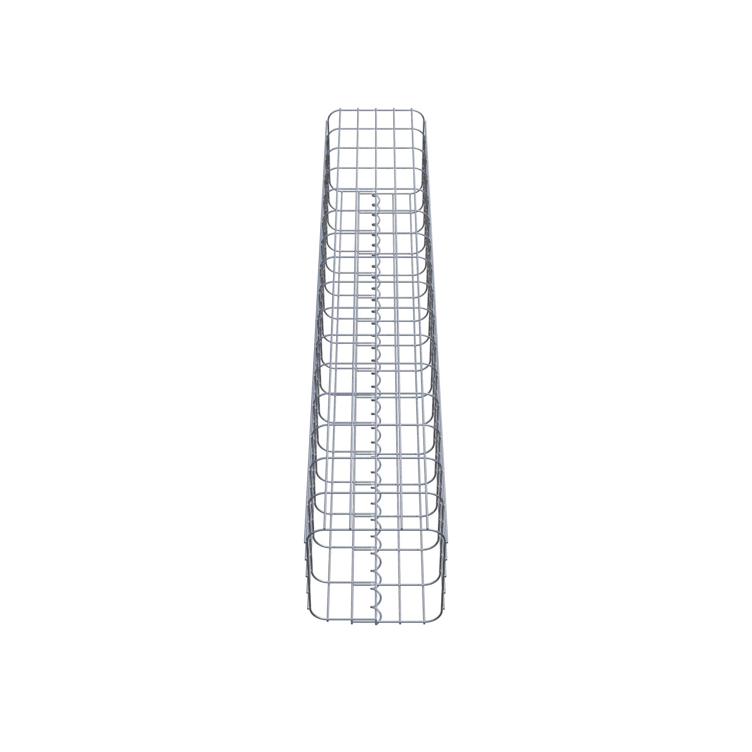 Artikelbeschreibung:. - Abmessungen Gabione:. 27 cm x 27 cm (L x T). - Maschenweite Gitter:. 5 cm x 10 cm. - Material:. Draht (Durchmesser 4 mm) galvanbeschichtet. - Beschichtung:. Zink-Alu min 350 g/m2. - Salzsprühnebel