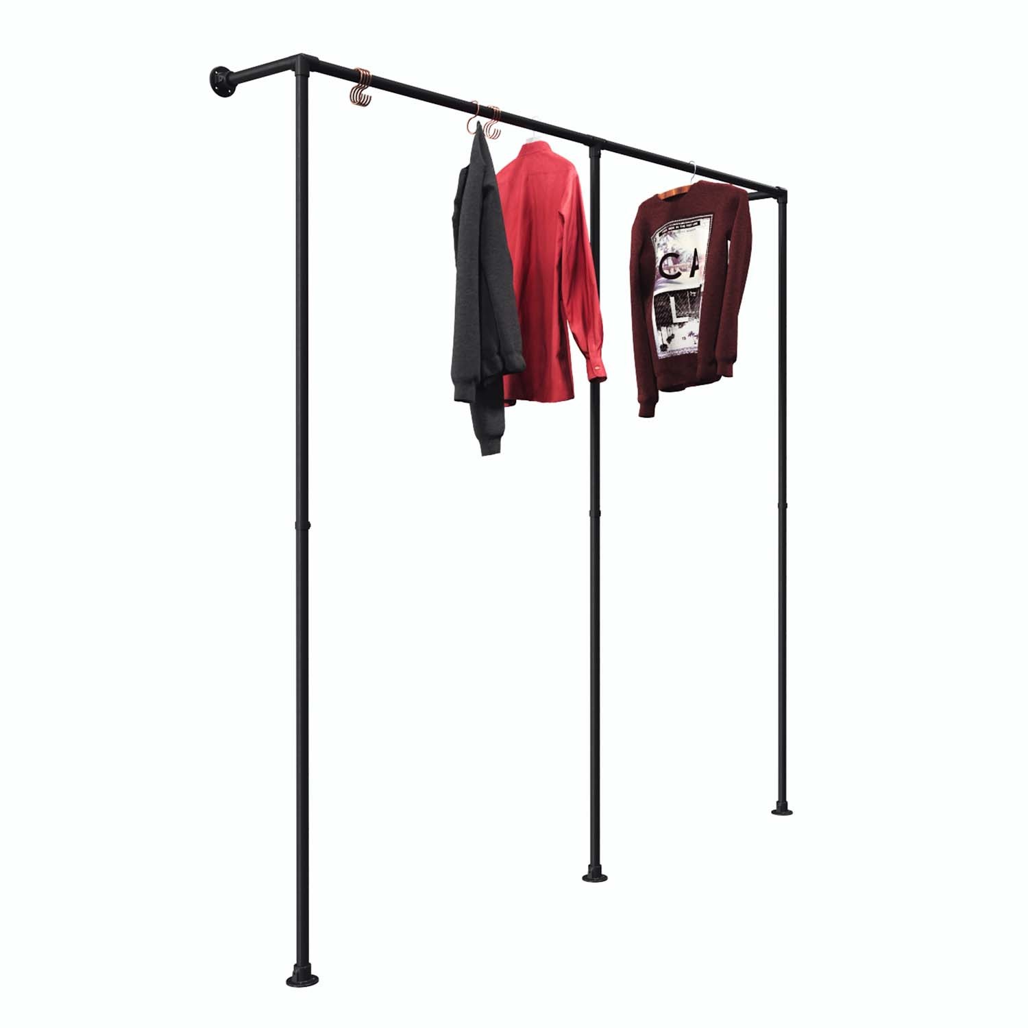 Modell Dresden: Das Walk-In-Doppelrack mit der Höhe von 200 cm ist in 5 Breiten – 150, 200, 250, 300 und 330 cm erhältlich. Die vertikale Mittelstange stabilisiert zusätzlich die Konstruktion und verhindert das Durchbieg