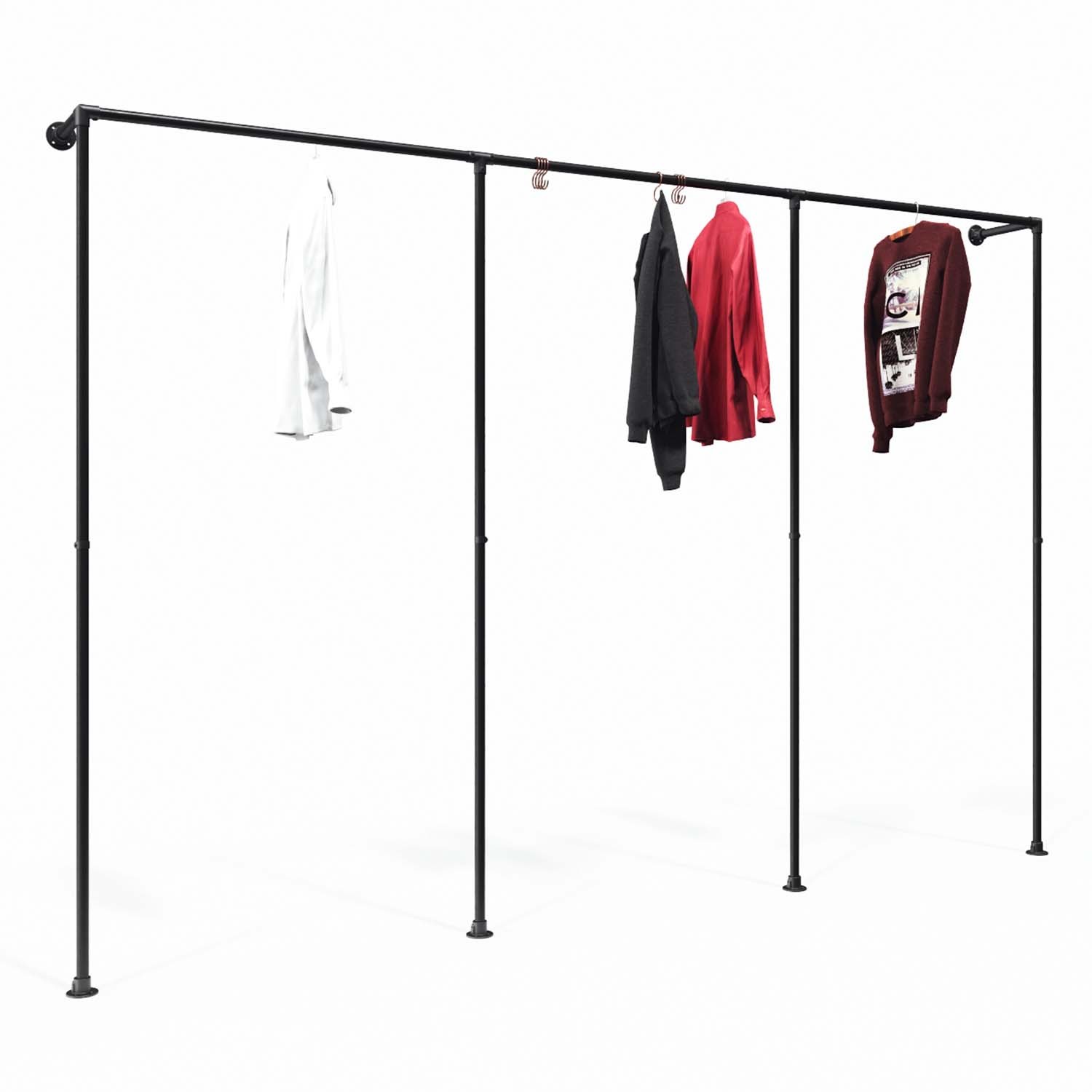 Modell Hannover: Das Walk-In-Triple-Rack mit der Höhe von 200 cm ist in 5 Breiten – 235, 300, 375, 450 und 495 cm erhältlich. Die 2 vertikalen Mittelstangen stabilisieren die gesamte Konstruktion und verhindern das Durch