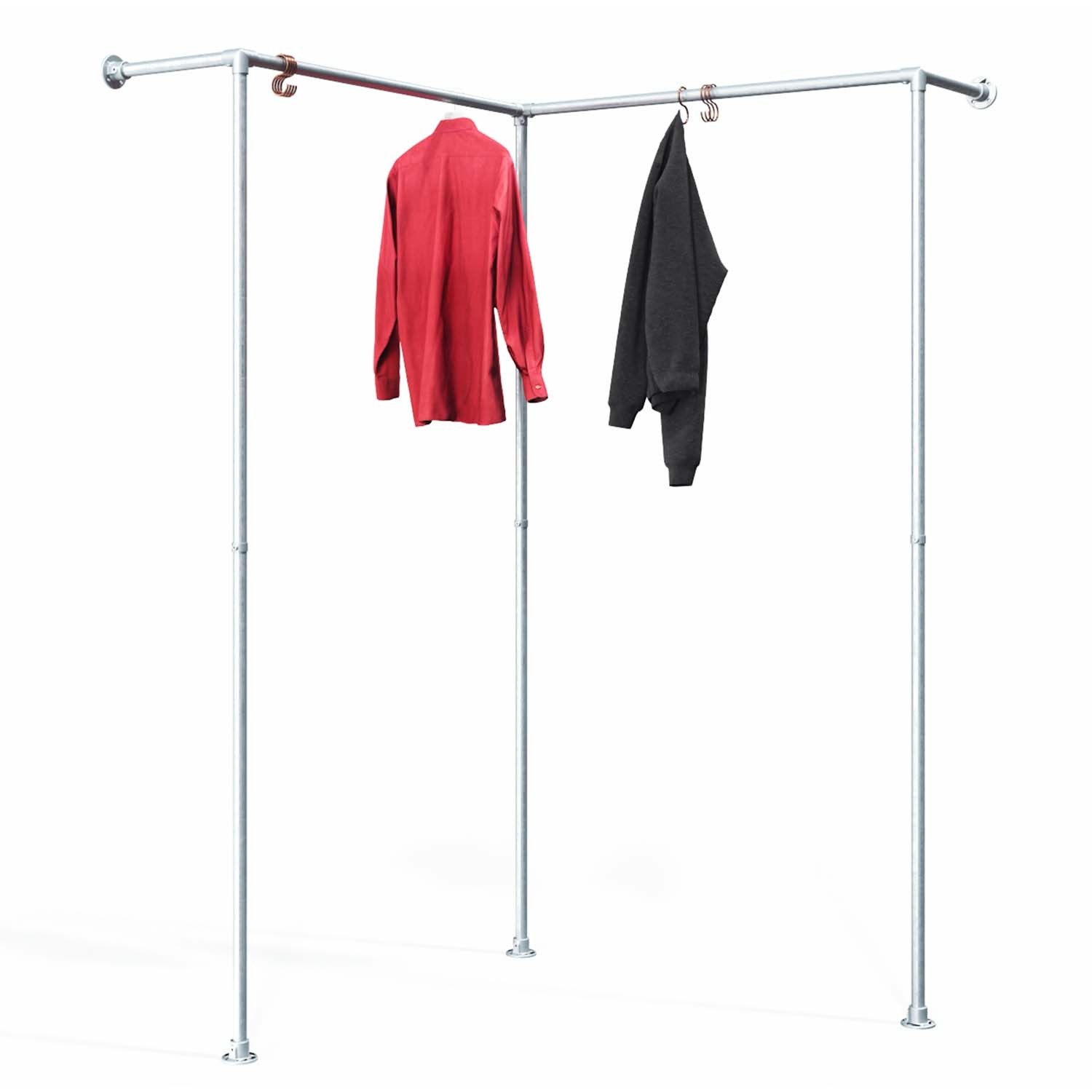 Modell Köln: Eine Walk-In-Doppelrack-Winkelgarderobe (H200 x B150 (2 x 75) cm) ist dank der vertikalen Mittelstange sehr stabil und belastbar. Sie passt perfekt in jede Ecke und eignet sich für Modestudios, Boutiquen und