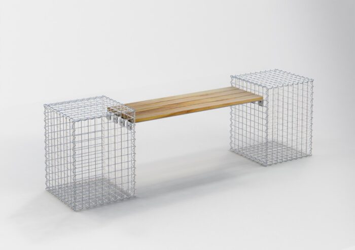 Gartenbank 2 Gabionen TEAK MW 5 x 5 cm