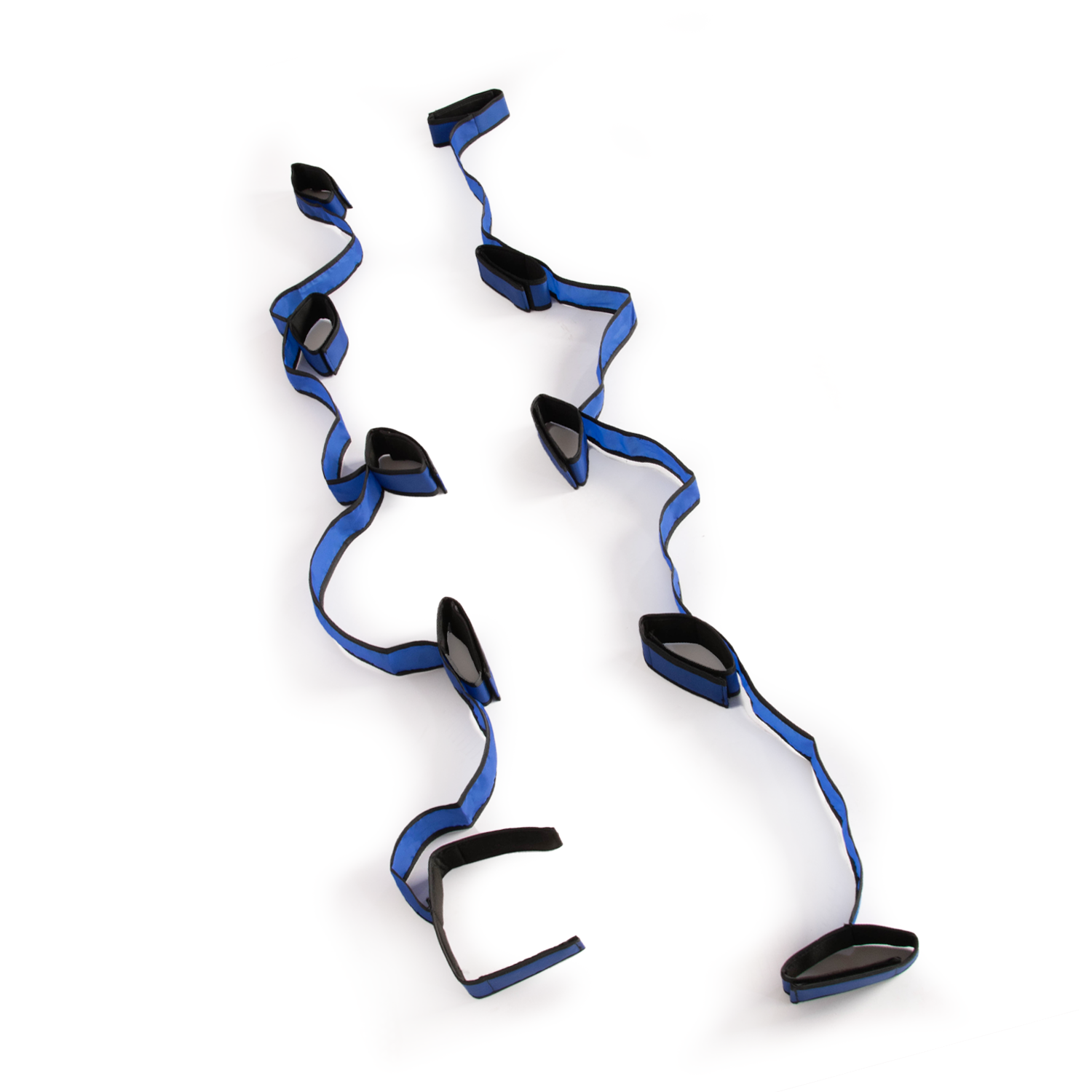 Die beiden Koordinationslaufbänder verbinden eine bis zu 5 Personen starke Gruppe miteinander. Die Klettverschlussbänder sind schnell angelegt und lassen sich auch ebenso schnell wieder lösen. Miteinander verbunden sein