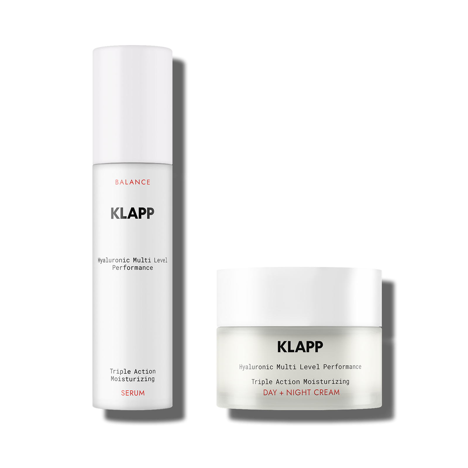 KLAPP Cosmetics – HYALURONIC MULTI LEVEL PERFORMANCE Triple Action Moisturizing Power Duo Set (Triple Action Moisturizing Day + Night Cream 50ml + Triple Action Moisturizing Serum 50ml)