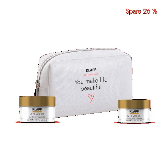 Das A Classic Beauty Set ist ein luxuriöses Schönheits-Set, das aus der Effect Mask, einer hochwertigen Eye Care Cream und einer stylischen Kosmetiktasche besteht. Mit diesem Set können Sie Ihre Schönheit und Ausstrahlun