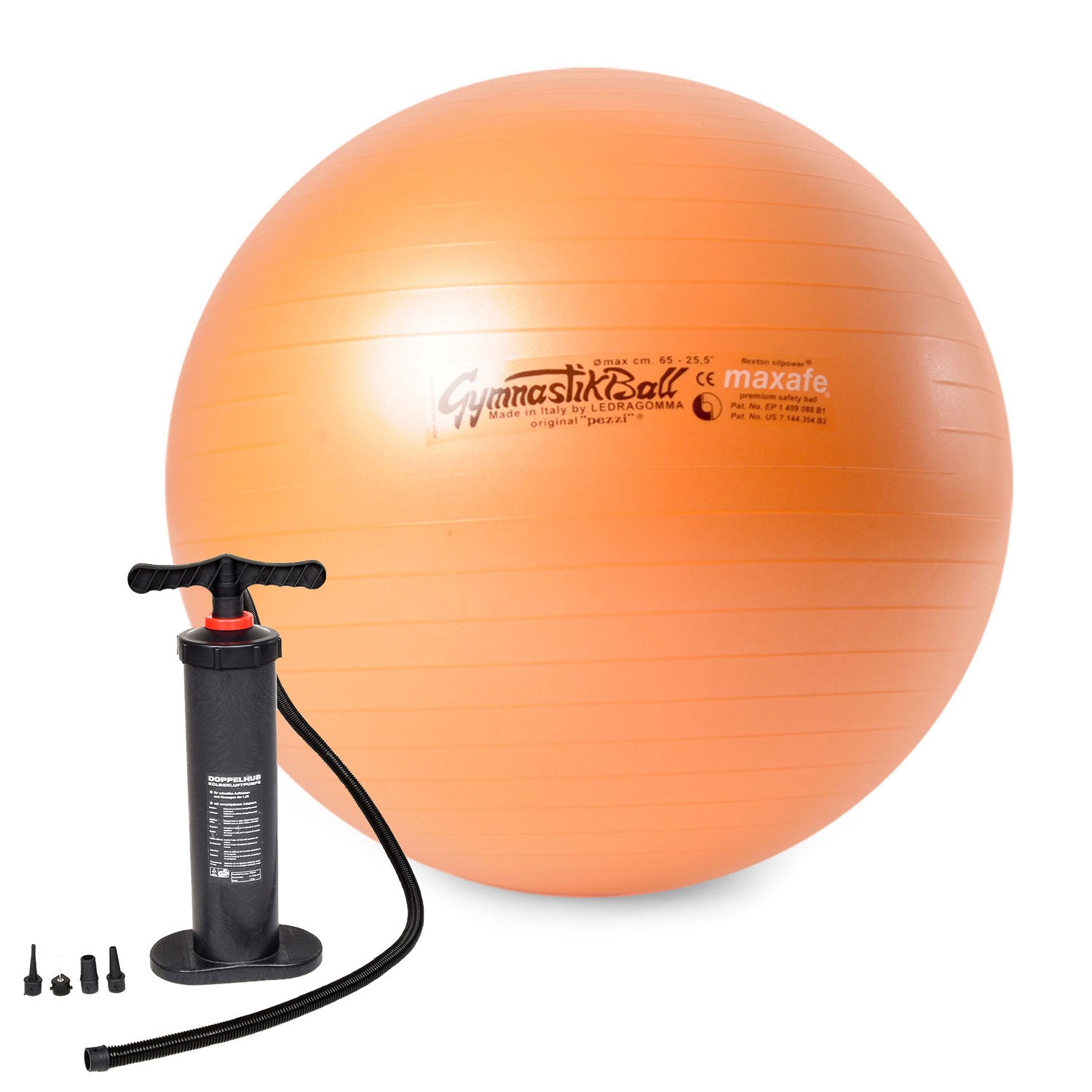 Der Original Pezziball MAXAFE® plus PumpeZum Gymnastik- & Sitzball MAXAFE®:Der Original Pezziball entspricht der europäischen Norm 93/42 EWG 'Medizinprodukte'Belastbarkeit 400 kg4 Größen: 42 cm, 53 cm,
