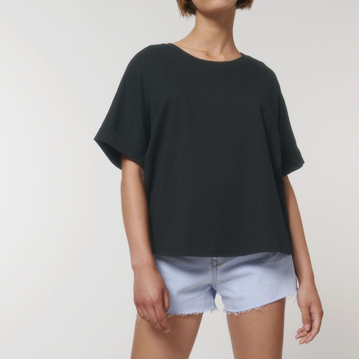 Fair produziertes und Bio-zertifiziertes Baumwoll T-Shirt mit gerollten Ärmeln.