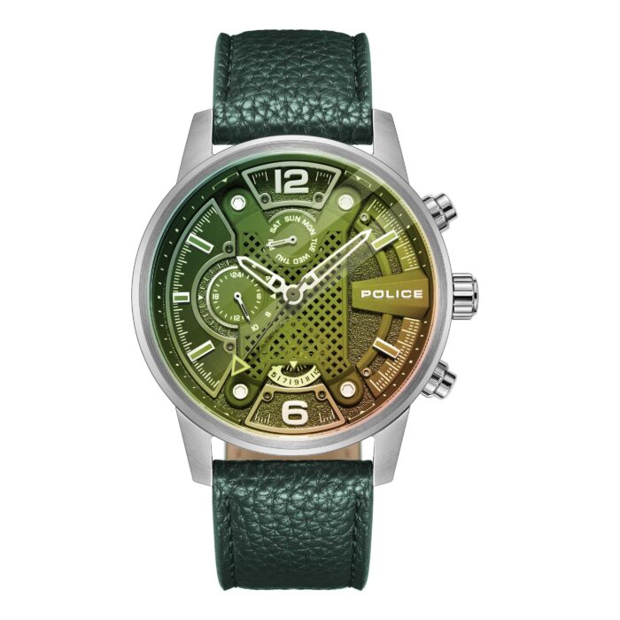 Police Herren Armbanduhr Analog Leder Grün 42mm Chronograph Herrenuhr Uhren