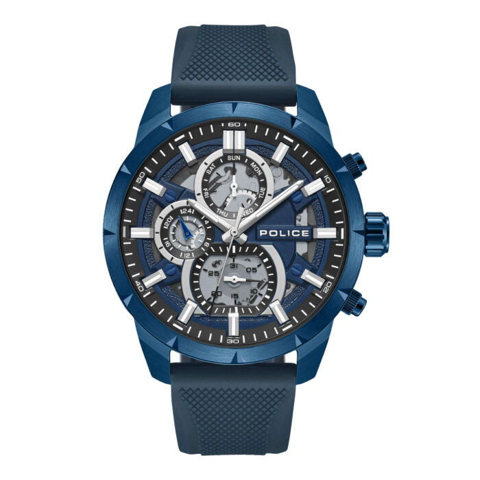 Police Herren Armbanduhr Chronograph Blau 44mm Edelstahl/Silikon Herrenuhr Sportuhr Armbänder Uhren