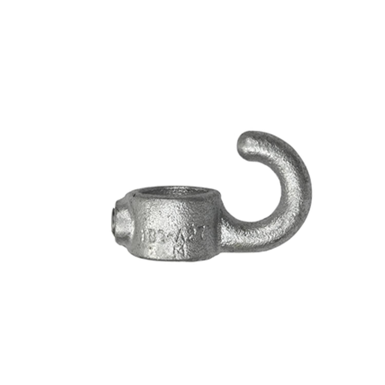 Rohrverbinder Stellring mit Haken, Typ 61. Rohrverbinder für Kettenbefestigungen. Dieser Verbinder wird auch oft als Accessoire verwendet bei Garderoben aus Fittings und Rohren. Am Haken kann dann zum Beispiel eine Jacke