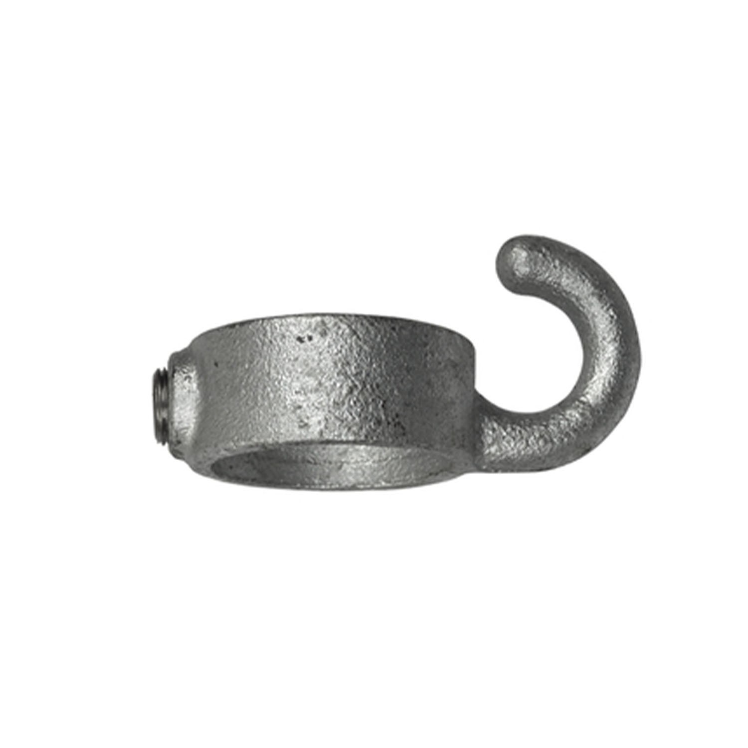 Rohrverbinder Stellring mit Haken, Typ 61. Rohrverbinder für Kettenbefestigungen. Dieser Verbinder wird auch oft als Accessoire verwendet bei Garderoben aus Fittings und Rohren. Am Haken kann dann zum Beispiel eine Jacke