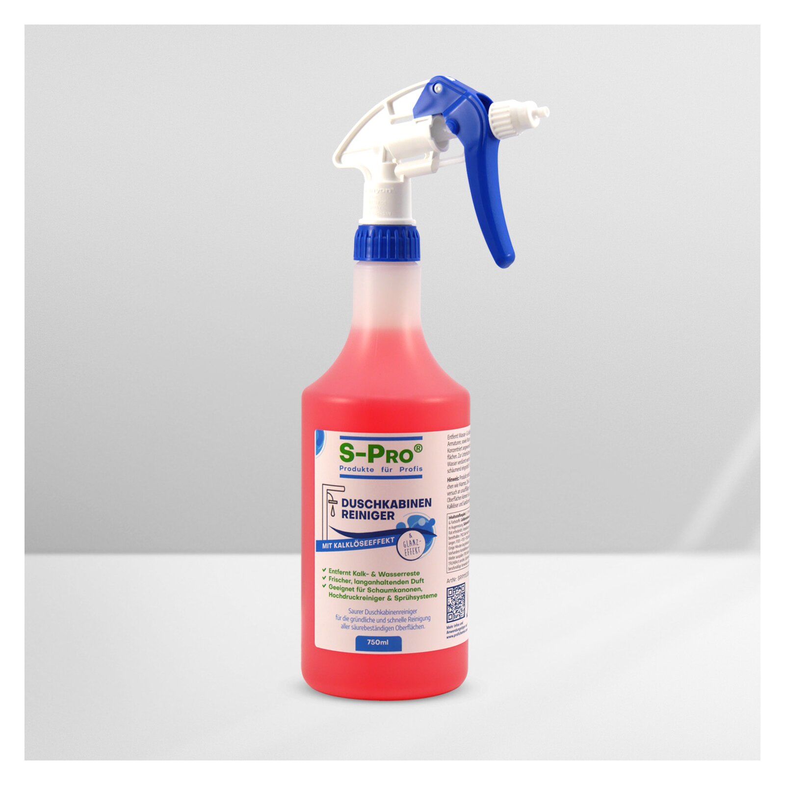 S-Pro Duschkabinenreiniger Saurer Duschkabinenreiniger für die gründliche und schnelle Reinigung aller säurebeständiger Oberflächen. Unterhaltsreiniger mit Kalklöseeffekt Mit frischem und langanhaltendem Duft Entfernt Ka