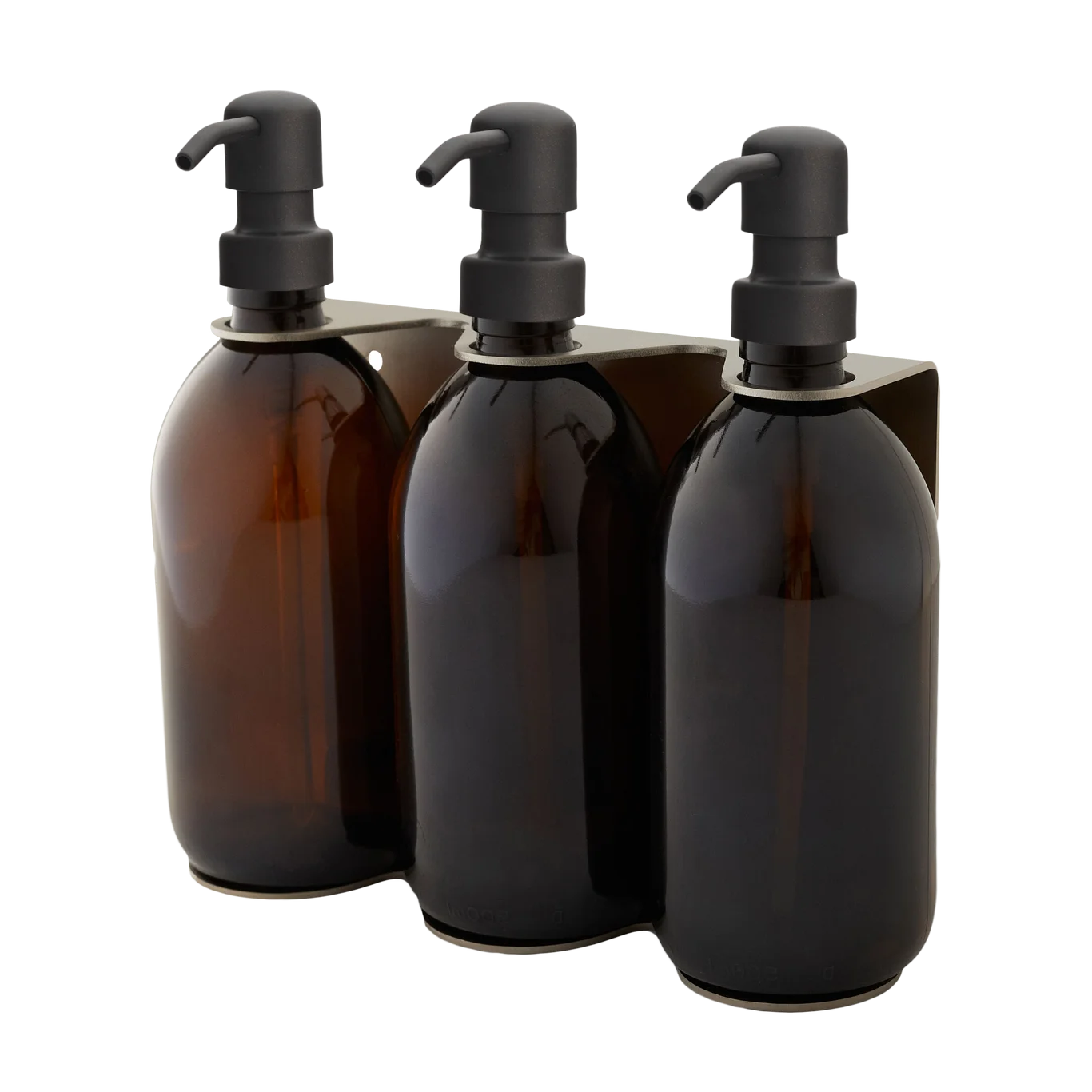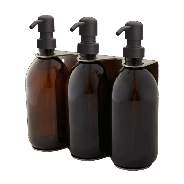 Wir präsentieren unseren modernen, dreifachen, an der Wand montierten Seifenspender aus Nickel, der dafür konzipiert ist, Ihre Seife immer in Reichweite zu haben. Dieser dreifache, an der Wand montierte Halter mit drei n