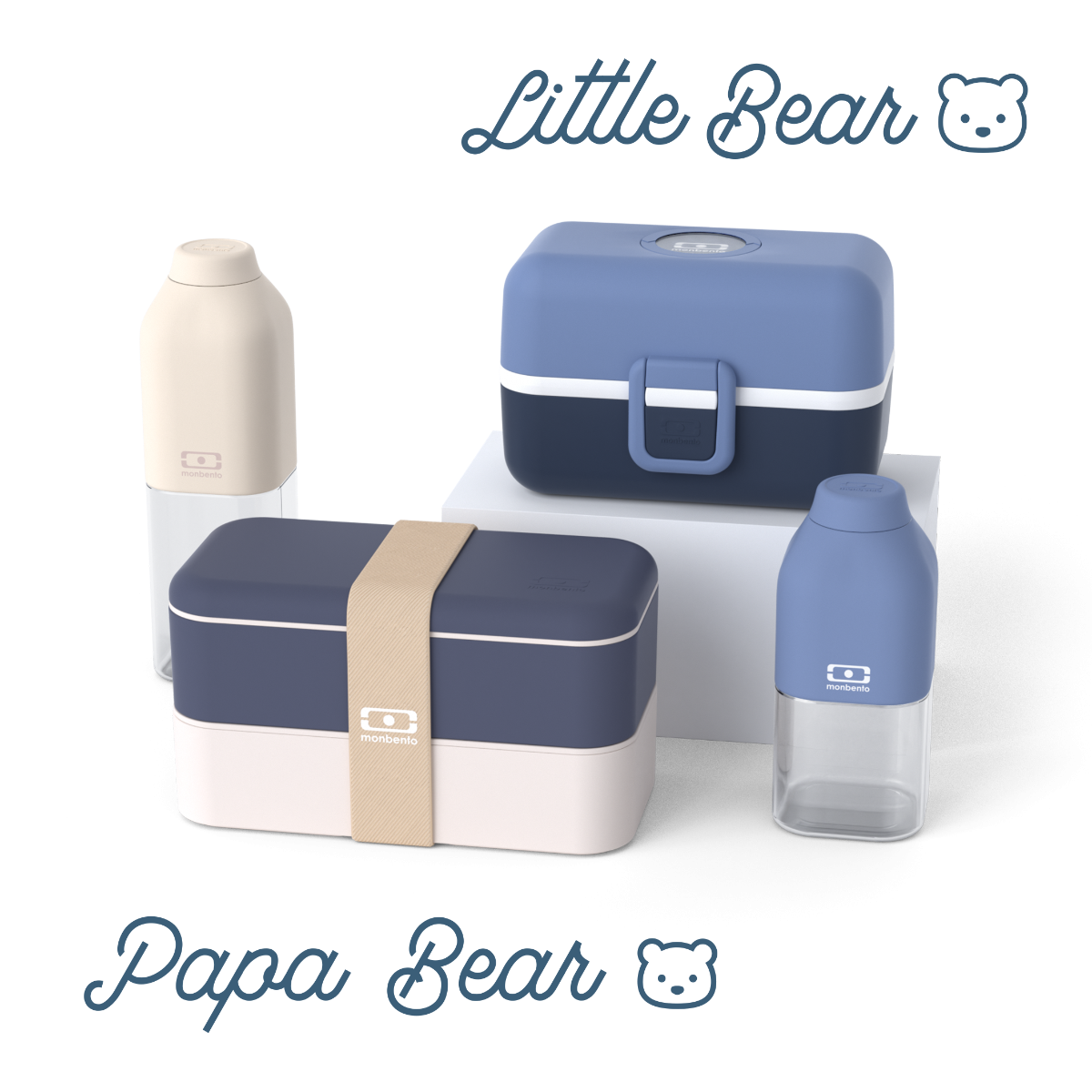 Diese Geschenke für Papa besteht aus : – 1 MB Original blau Natural "Papa Bear" Lunchbox für Erwachsene, luftdicht, mikrowellen- und spülmaschinenfest – 1 MB Tresor blau Infinity "Little Bear" Lunchbox für Kinder, person