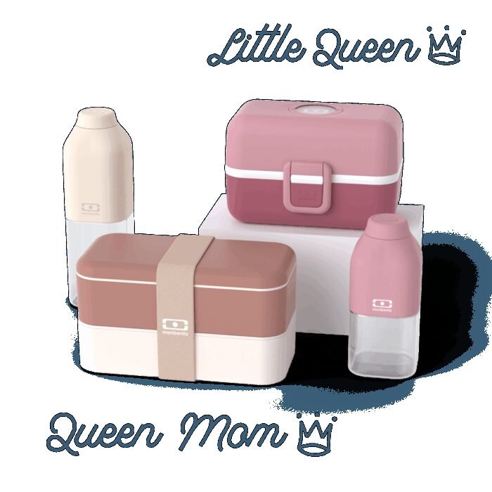 Diese Geschenke für Mama mit Kindern besteht aus : – 1 MB Original rosa Moka “Queen Mom” Lunchbox für Erwachsene, luftdicht, mikrowellen- und spülmaschinenfest – 1 MB Tresor rosa Blush “Little Queen” Lunchbox für Kinder,