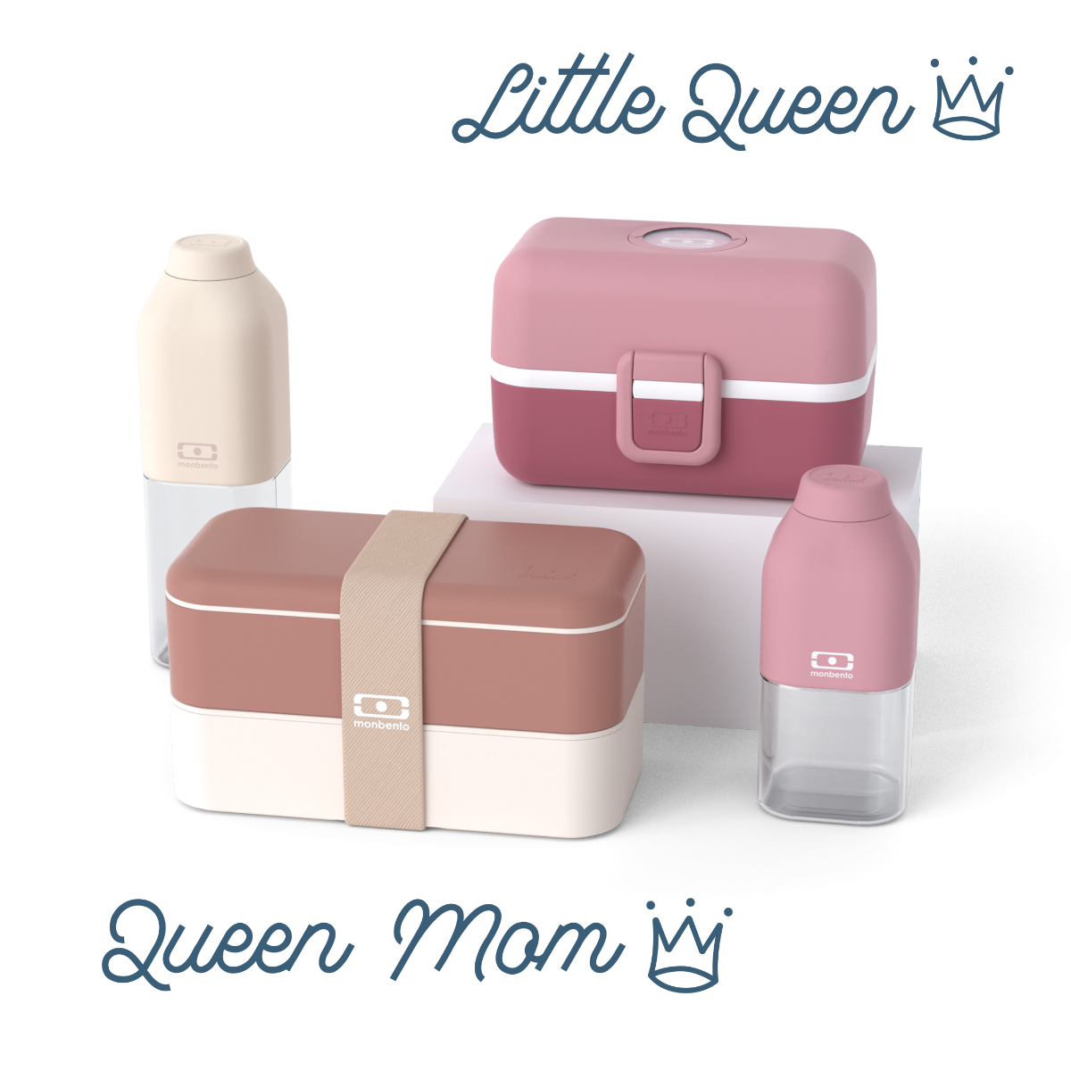 Diese Geschenke für Mama mit Kindern besteht aus : – 1 MB Original rosa Moka "Queen Mom" Lunchbox für Erwachsene, luftdicht, mikrowellen- und spülmaschinenfest – 1 MB Tresor rosa Blush "Little Queen" Lunchbox für Kinder,