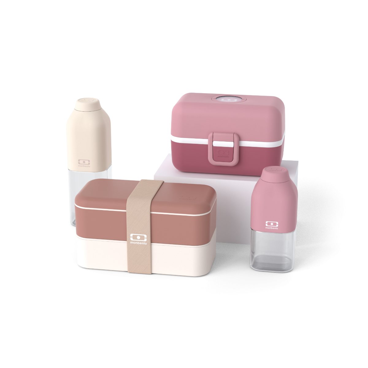 Diese Geschenkidee für Familien mit Kindern besteht aus : – 1 MB Original rosa Moka Lunchbox für Erwachsene, luftdicht, mikrowellen- und spülmaschinenfest – 1 MB Tresor rosa Blush Lunchbox für Kinder, personalisierbar un