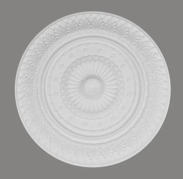 Die Stuck-Rosette B3050 ist ein dekoratives Element, das zur Montage an Decken oder Wänden gedacht ist. Sie besteht aus langlebigem Polymer, das für seine hohe Widerstandsfähigkeit bekannt ist. Das Material ist resistent