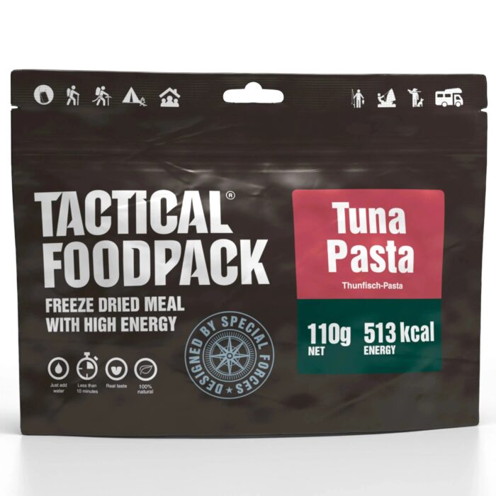 - Mit den Tactical Foodpack Thunfischnudeln erhältst Du eine energiereiche Mahlzeit für den Einsatz, die Krisenvorsorge oder Outdoor-Ausflüge.