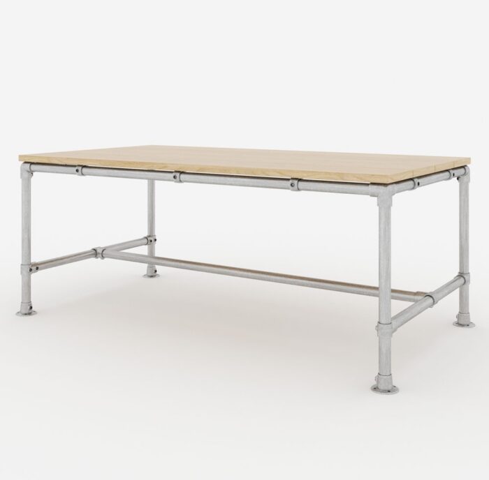 Das Tischgestell besteht aus 42 mm starken Aluminiumrohren und verzinkten Eisengussverbindungen. Achtung: Die Tischplatte ist nicht im Lieferumfang enthalten. Man kann die Arbeitsplatte als separates Produkt kaufen.