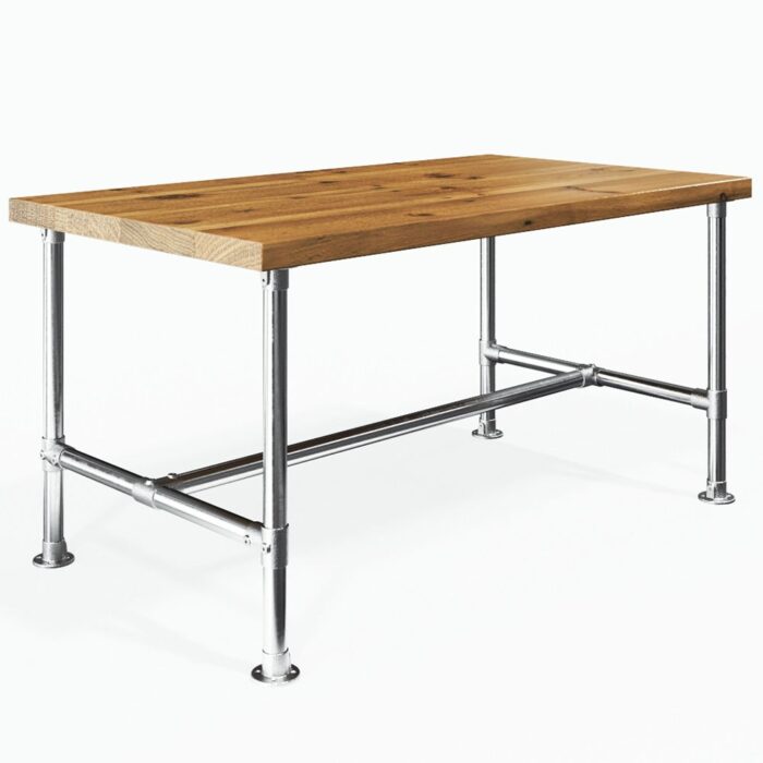 Klemp Tischgestell Wien im Industrie-Stil, aus silberfarbenen Aluminiumrohren und Verbindern, DIY-Gestell zum Selbermachen, Klassische H-Tischbeine mit Traverse aus Rundprofilen