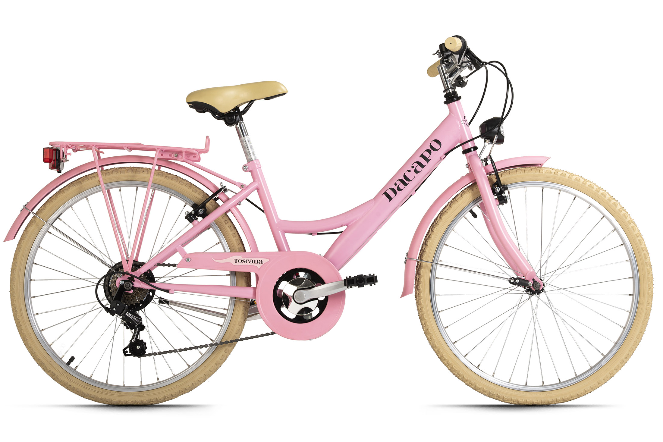 Rosa wie Zuckerwatte auf der buntesten Kirmes, die du dir vorstellen kannst: das DaCapo TOSCANA Kinderfahrrad! Das 24" Rad kombiniert den Rahmen in traumhaftem Rosa mit Griffen, Reifen und Sattel in Cremefarbe. So s