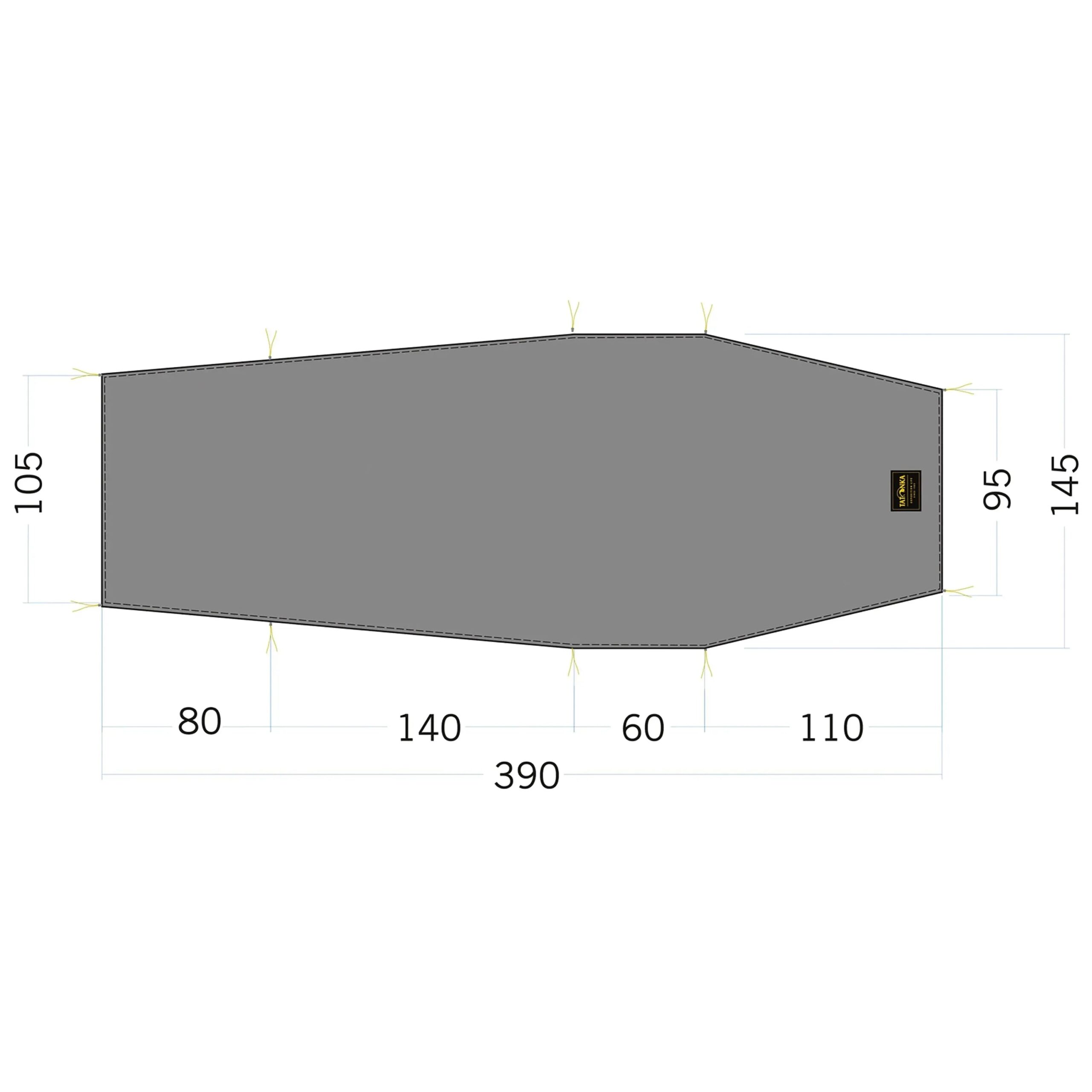 Sie ist auf die Bodenmaße des Zeltes abgestimmt und lässt sich an dessen Ecken fixieren.